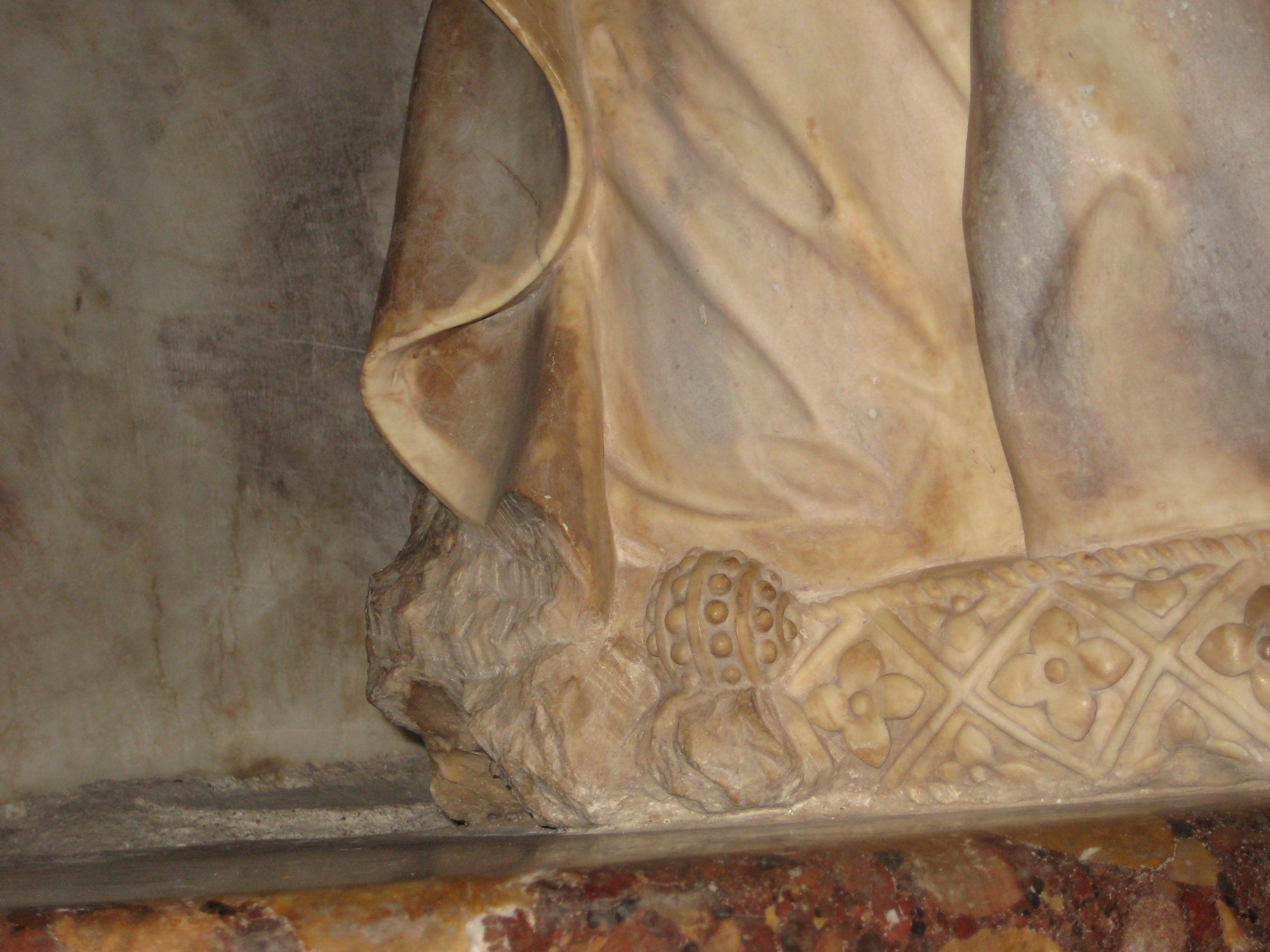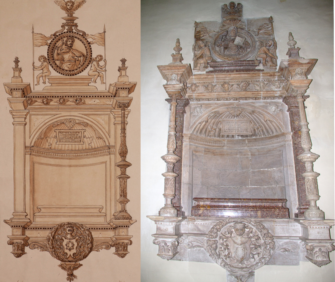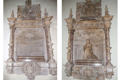 Concretamente se añadieron en yeso pintado algunos ángeles, uno de los balaustres de cada sepulcro y se repararon pequeñas roturas en los entablamentos y pedestales. Una mirada atenta al conjunto escultórico permite descubrirlo con facilidad.