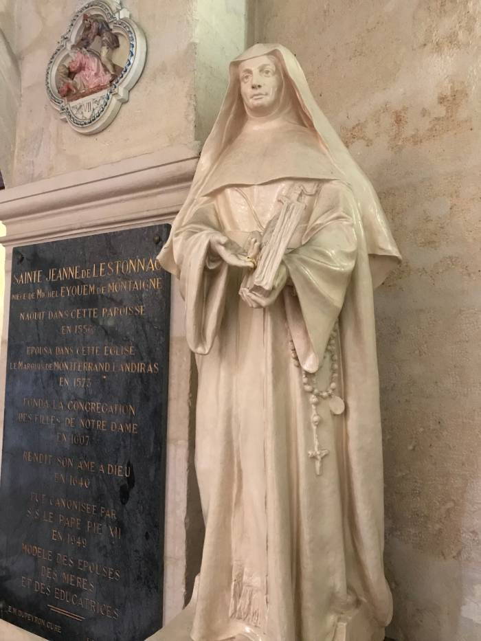 Escultura de santa Juana de Lestonnac con las Reglas, que se venera en la iglesia de San Eloy, en Burdeos.