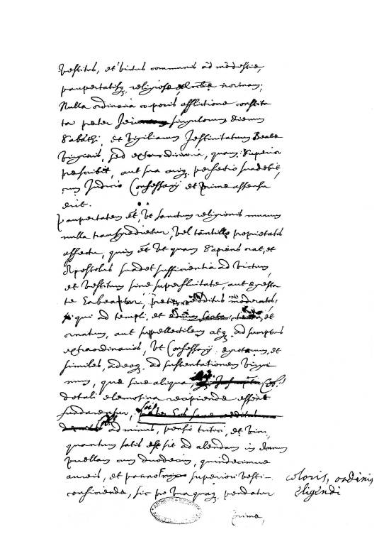 El documento con la corrección al margen hecha por el papa Paulo V, tal y como se conserva en el Archivo Secreto Vaticano.