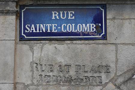 Placa de la calle de Santa Colombe, donde se encontraba la parroquia del señor Moisset, desaparecida durante la Revolución francesa.