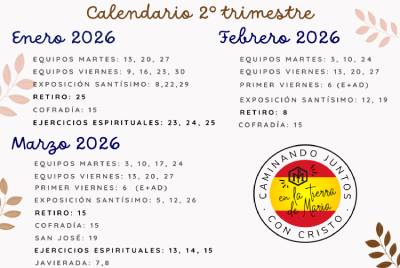 Calendario C. Mariana San José Publicamos el calendario de actividades de la Congregación Mariana de la Inmaculada y San José previstas para el 2º trimestre.Calendario
