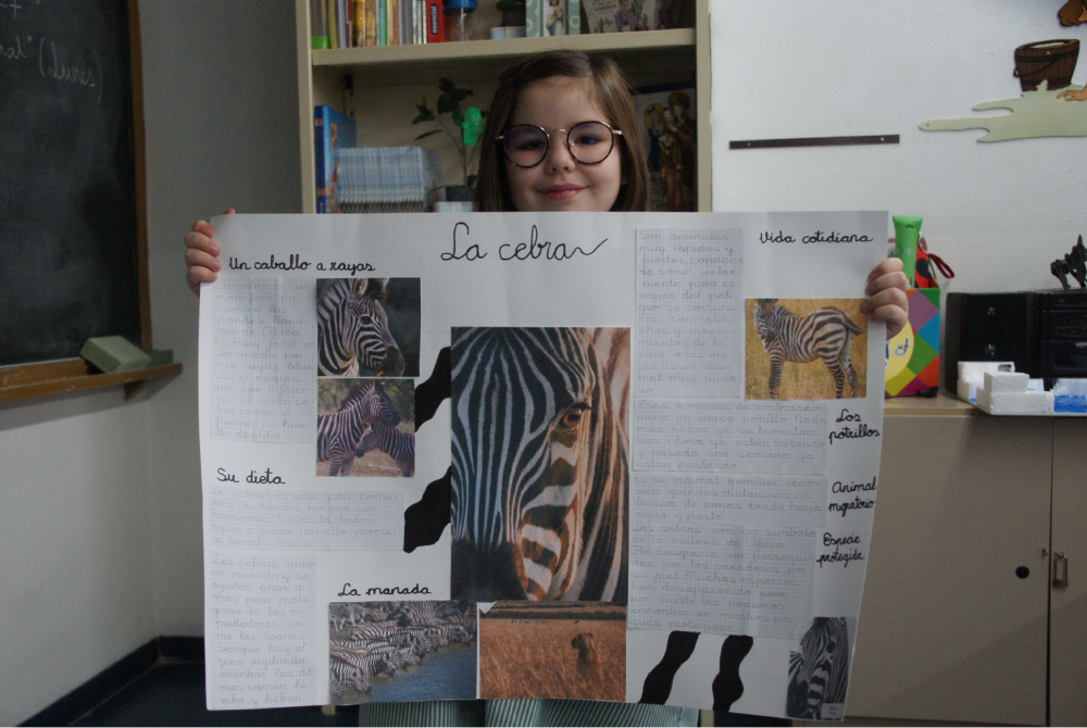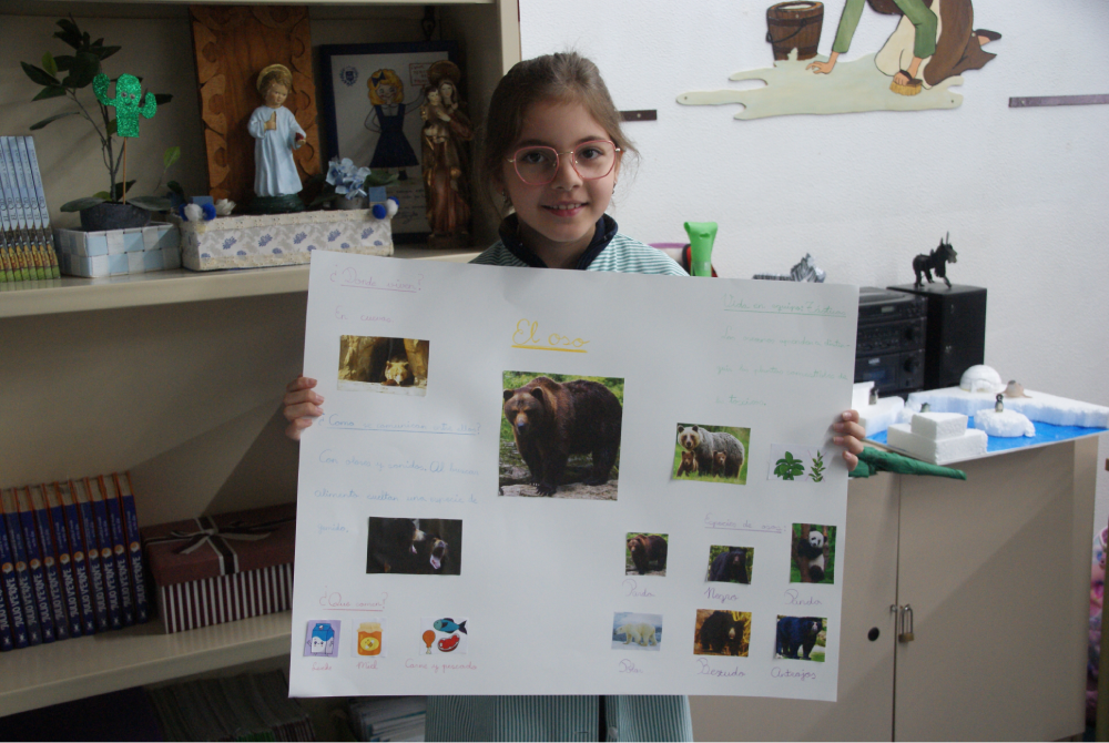 Las alumnas de 3.º de Primaria han realizado para sus compañeras interesantísimas exposiciones orales sobre los animales. Se trata de una de las actividades de clase de Lengua para desarrollar la destreza de la expresión oral de las estudiantes, que han demostrado un gran dominio del lenguaje y de las habilidades de comunicación no verbal con gestos y contacto visual. Todo un aprendizaje para la vida.