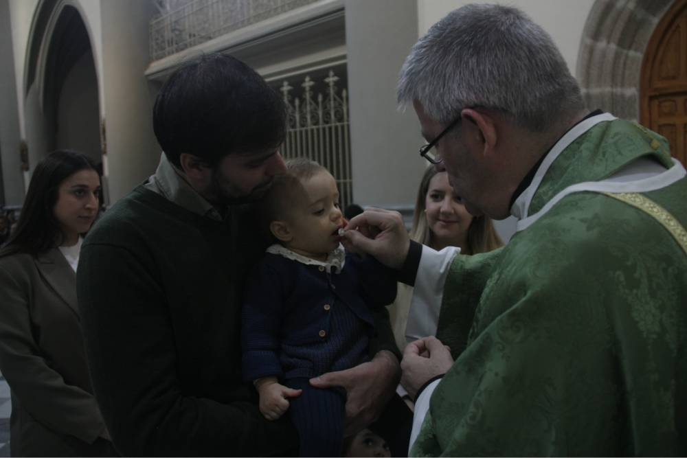 El domingo 16 de noviembre tuvimos en el colegio la tradicional imposición de medallas y escapularios de la Niña María a las nuevas alumnas de Educación Infantil y a los hijos de antiguas alumnas. La misa estuvo presidida por nuestro capellán, don Jorge López Teulón, y al final de esta las familias se acercaron al altar para recibir su medalla bendecida.
