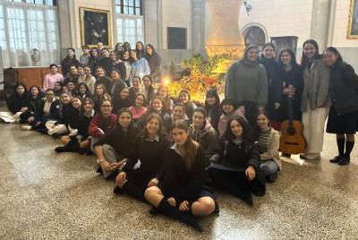 Como cada año las alumnas han visitado por cursos el precioso belén que cada año se pone en el recibidor del colegio. A continuación, han cantado un villancico y el capellán del colegio ha bendecido a los Niños Jesús que pondrán en el nacimiento de sus casas.