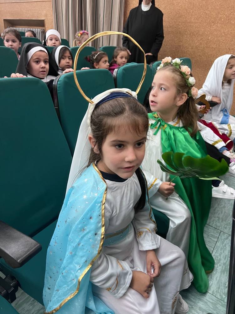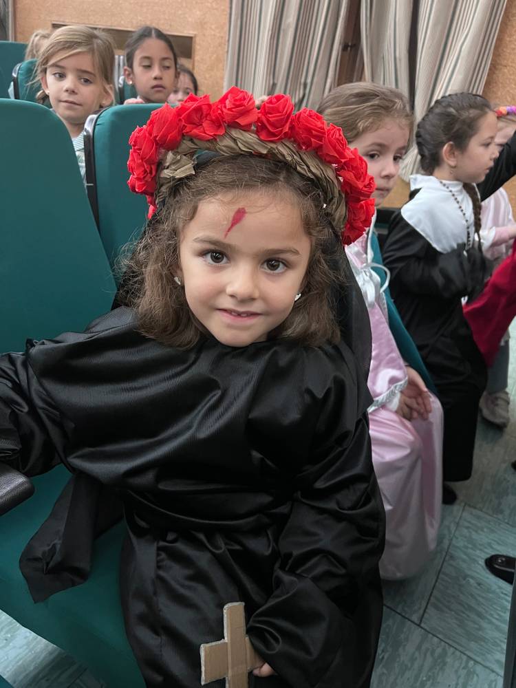 Con motivo de la proximidad de la solemnidad de Todos los Santos, el jueves 30 tuvimos el festival de Holywins en el que las alumnas de la Congregación Mariana de Primaria nos recordaron la llamada a la santidad que Dios hace a todos. Las alumnas de Infantil, por su parte, asistieron al festival disfrazadas de sus santos preferidos.