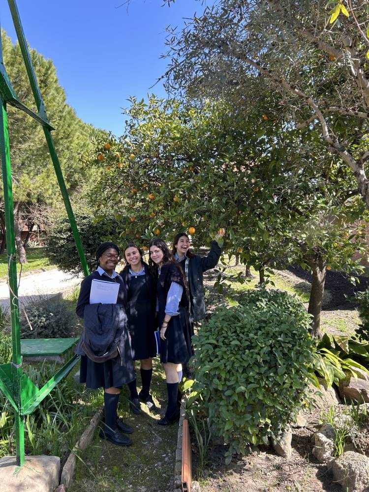 Las numerosas especies vegetales que tienen los jardines del colegio han permitido a las alumnas de 1.º de Bachillerato tener una clase de Biología al aire libre. La clasificación y taxonomía y el estudio de sus partes son reconocidas en las propias plantas que tenemos en el colegio.