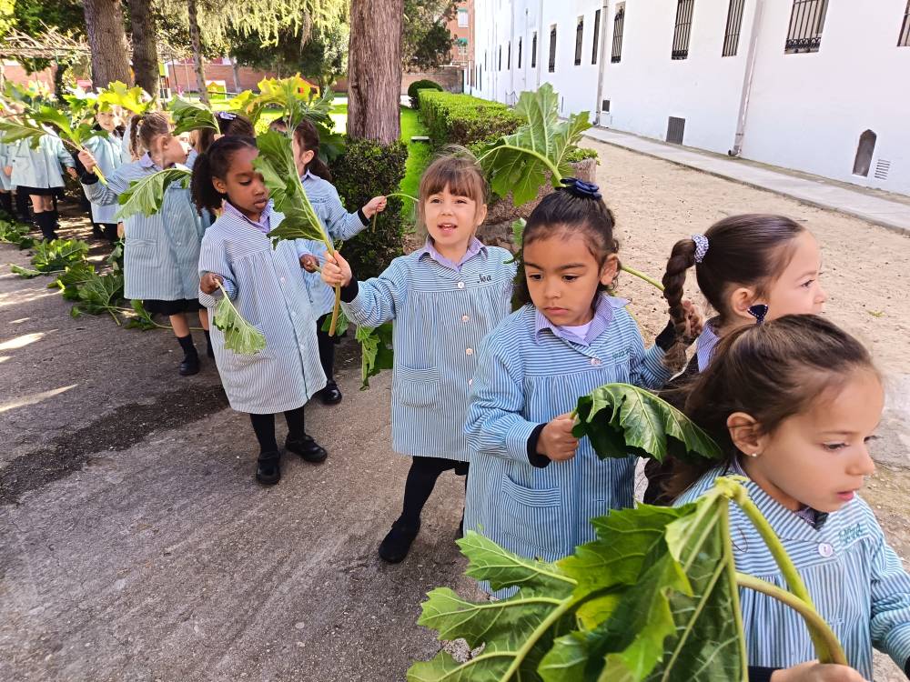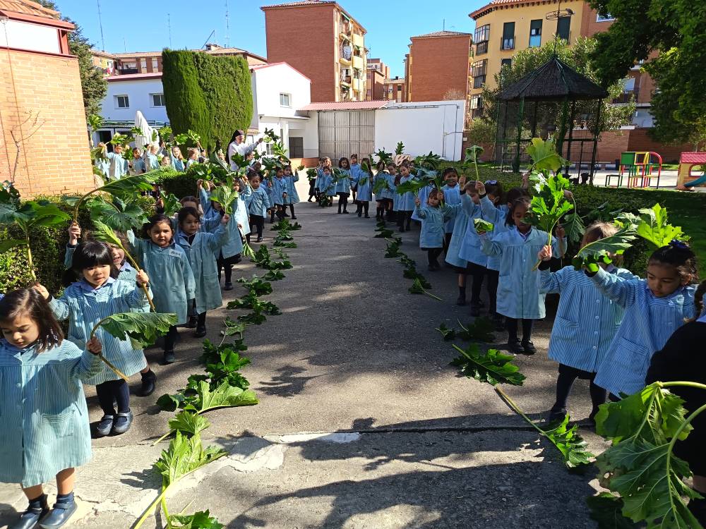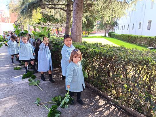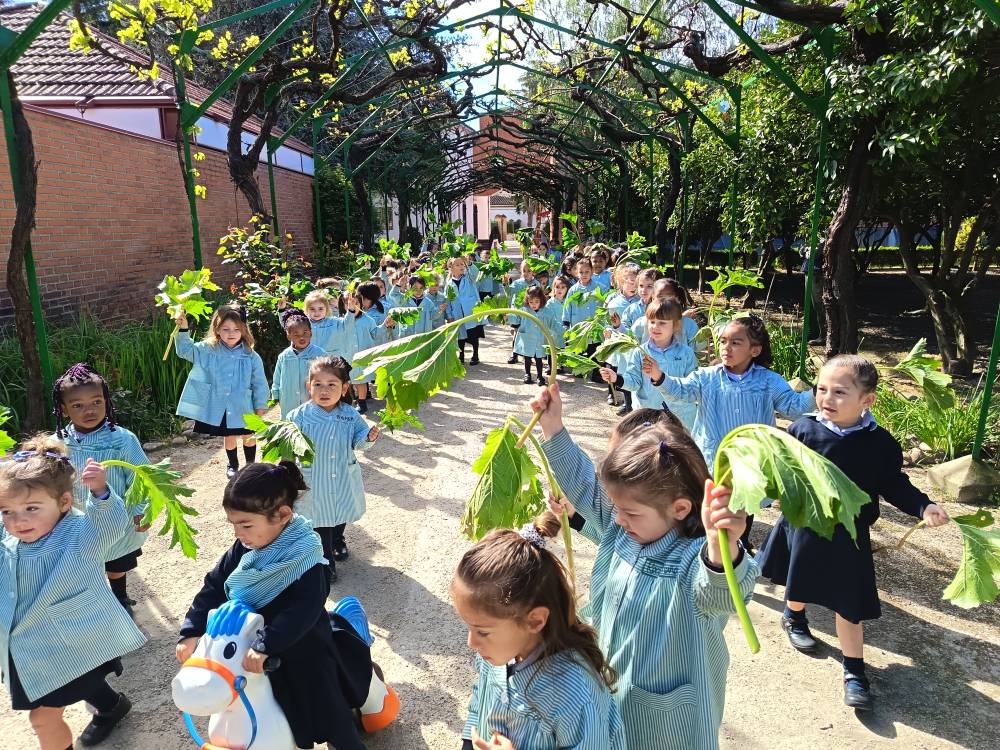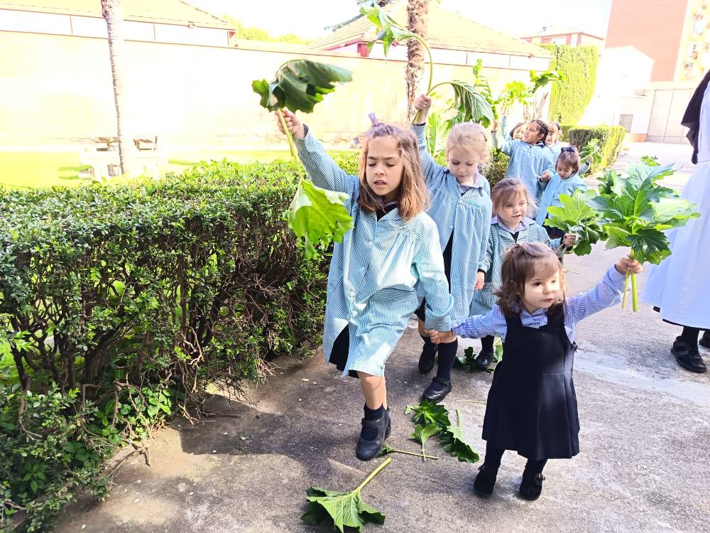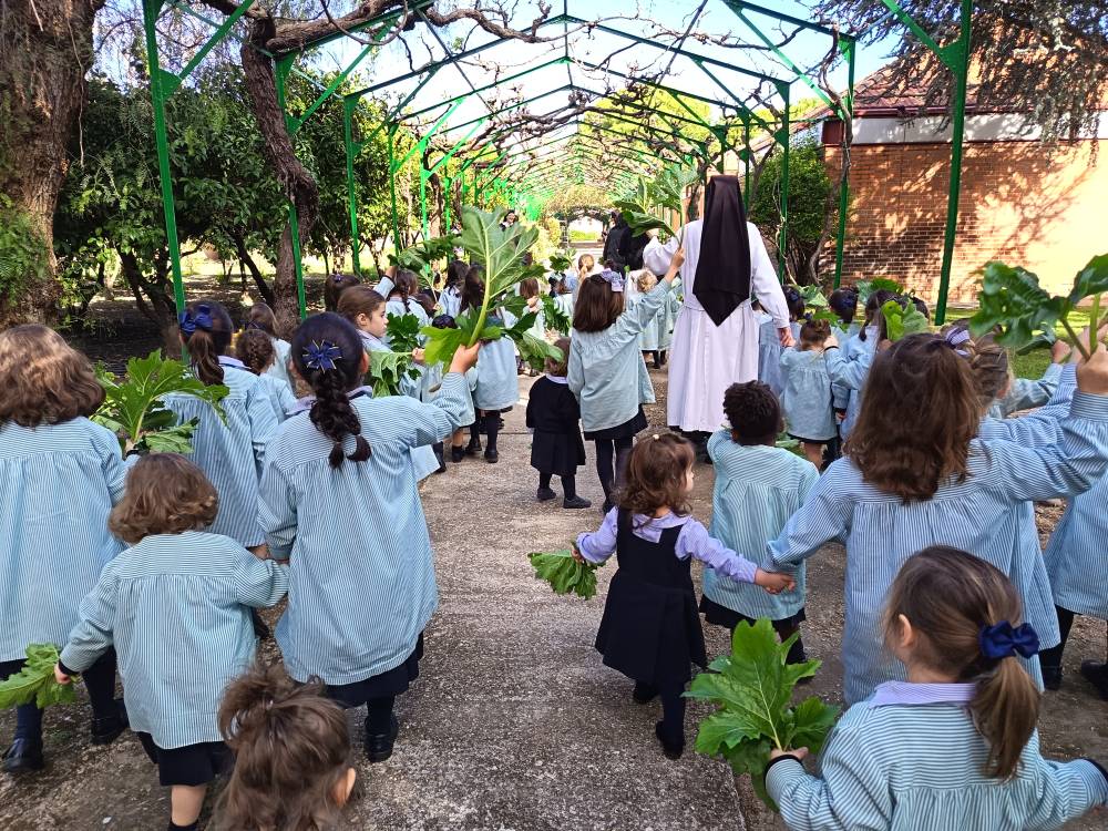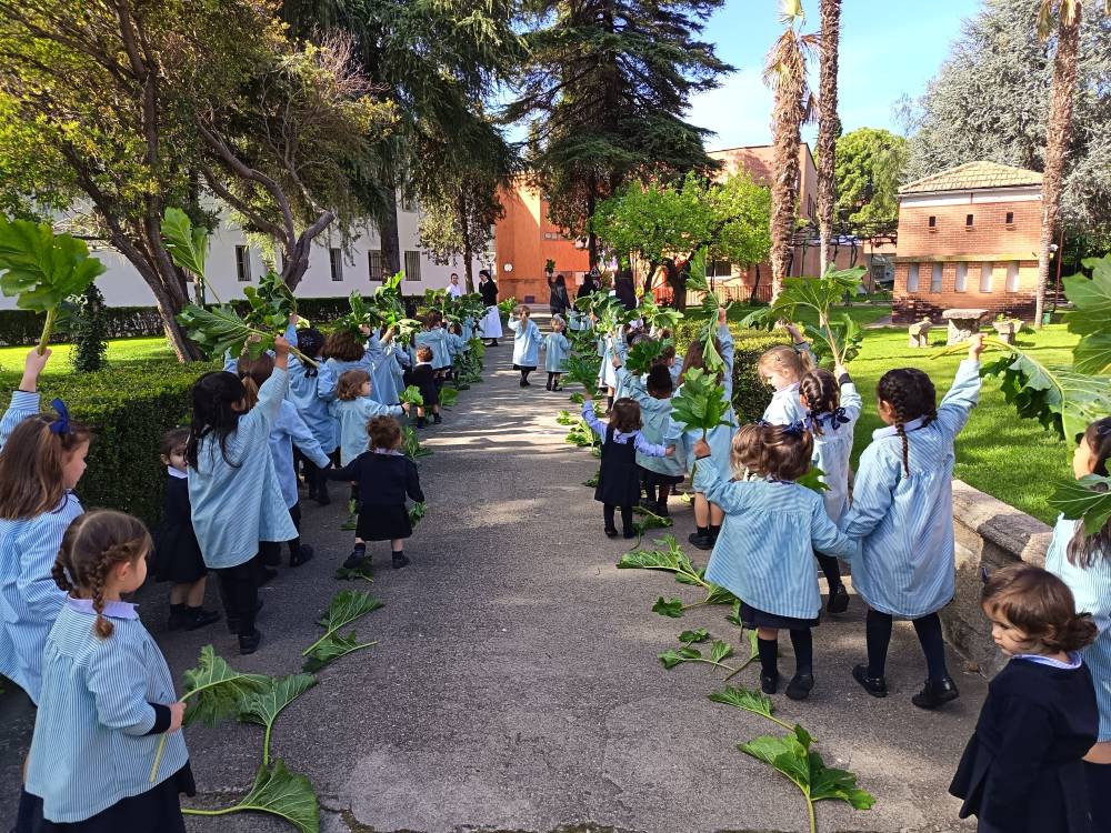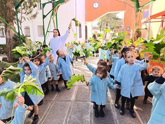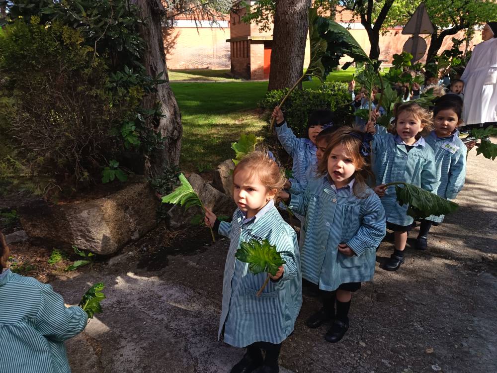 Como es tradicional, las alumnas de Infantil representaron en los jardines del colegio la entrada triunfal de Jesús en Jerusalén, que conmemoramos el Domingo de Ramos. Las niñas aclamaron con sus ramos a una de nuestras bebés que iba montada en un “pollino”. De esta forma tan gráfica, las más pequeñas se preparan para vivir la Semana Santa.