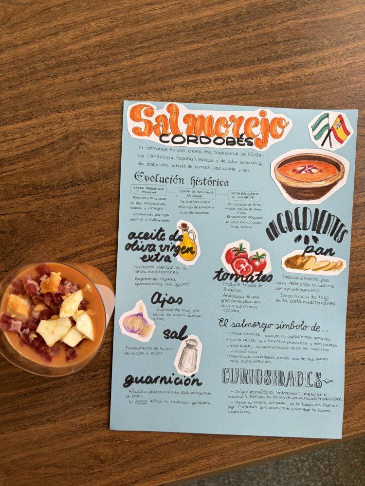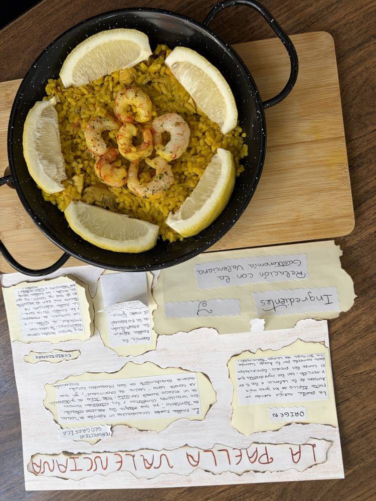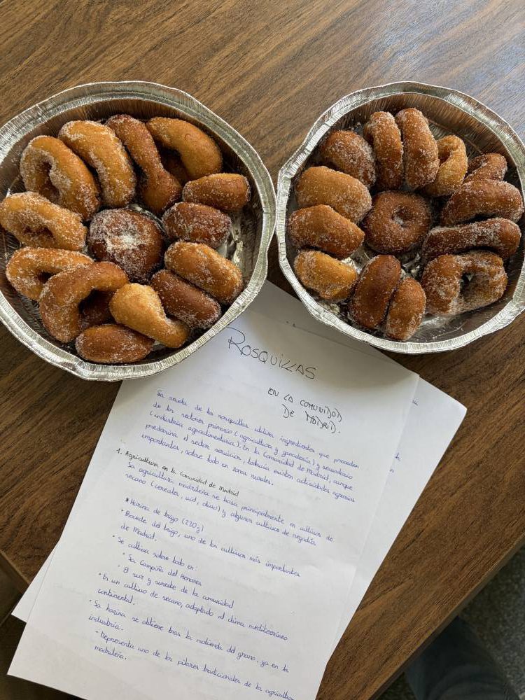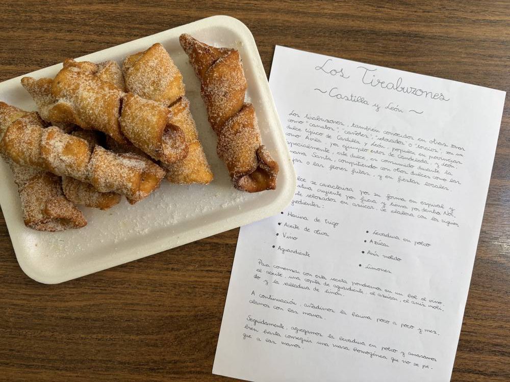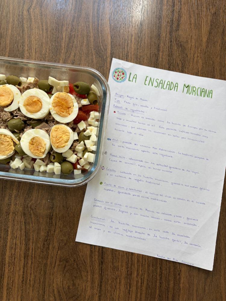 Las alumnas de 2.º de Bachillerato de Humanidades y Ciencias Sociales han realizado una muestra gastronómica en la materia de Geografía, para profundizar en las actividades del sector primario y su diversidad en España. Cada alumna preparaba un plato típico de cada comunidad autónoma y explicaba su relación con la agricultura, la ganadería y la pesca de la región. A continuación, invitaron a la degustación a sus compañeras de Bachillerato de Ciencias y Tecnología.