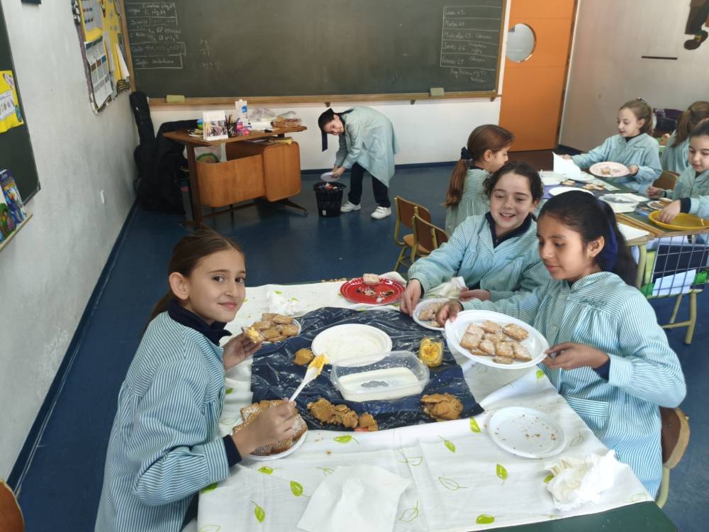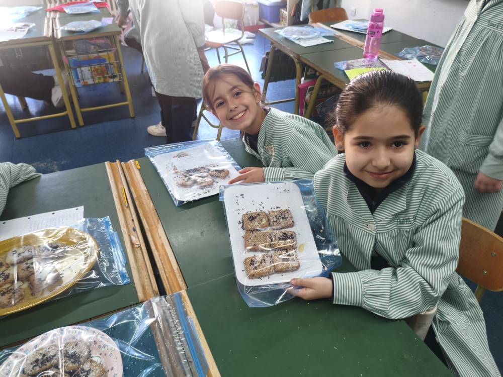 Las alumnas de 4.º de Primaria están aprendiendo las características de un texto instructivo y, para ello, han preparado una receta en clase. Primero se hizo una lista de los ingredientes, después de estudiaron los pasos que tenían que seguir y por último se ejecutaron. Antes hablamos de la importancia de la higiene al trabajar con alimentos y lavamos muy bien las manos y dimos consejos para no contaminar los alimentos. Tras degustar las famosas galletas de coco se animan a preparar una merienda en sus casas. ¡Deliciosas!