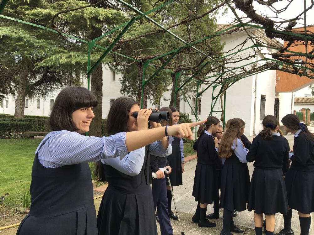 Las alumnas de 1.º ESO han estudiado las características de las aves y especialmente cuál era el canto de cada una para identificarlas a través de un trabajo cooperativo. La actividad ha concluido con su observación en los jardines del colegio.