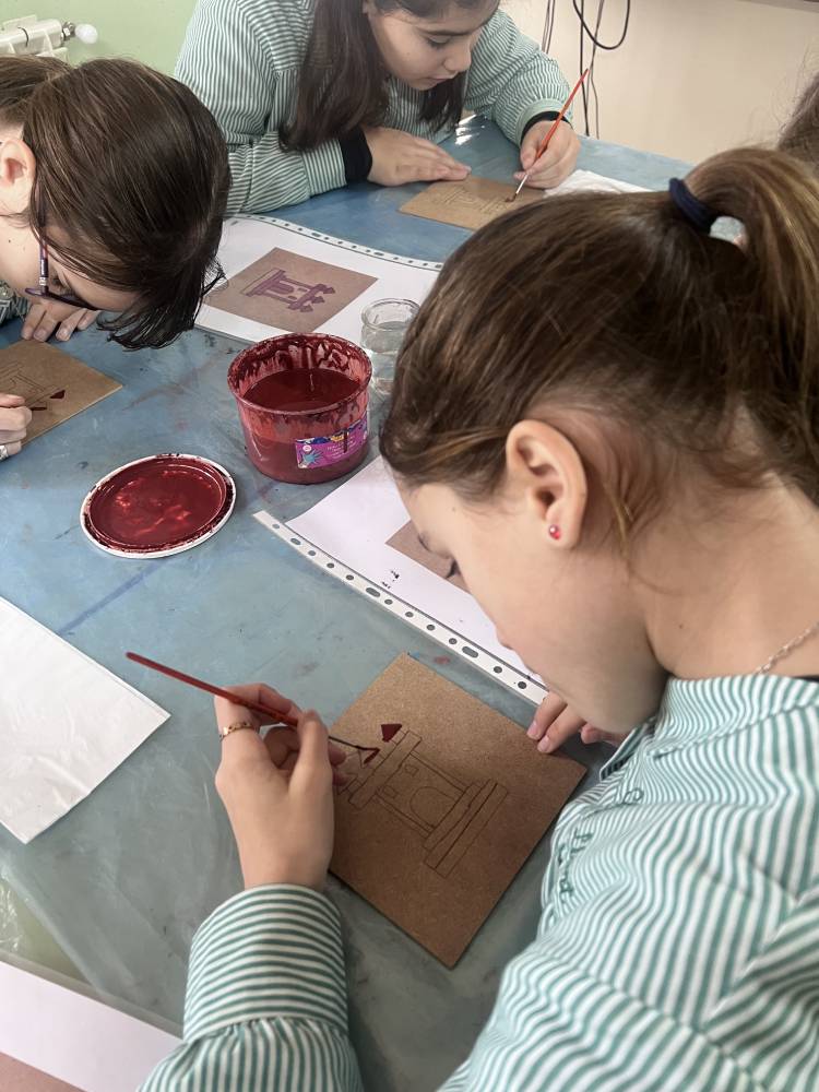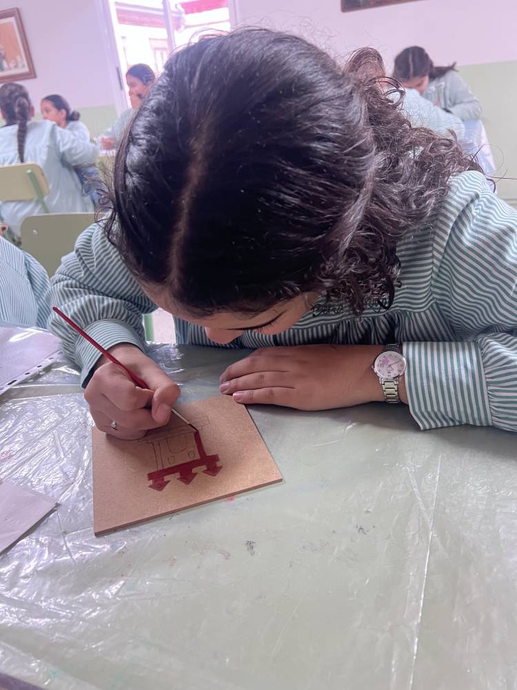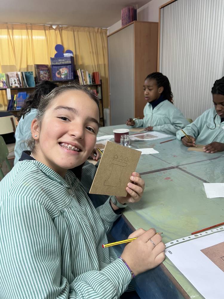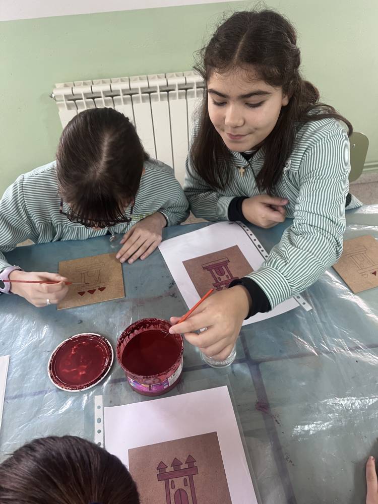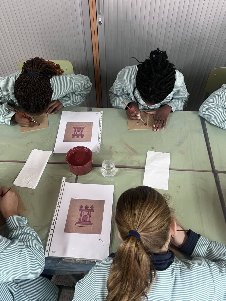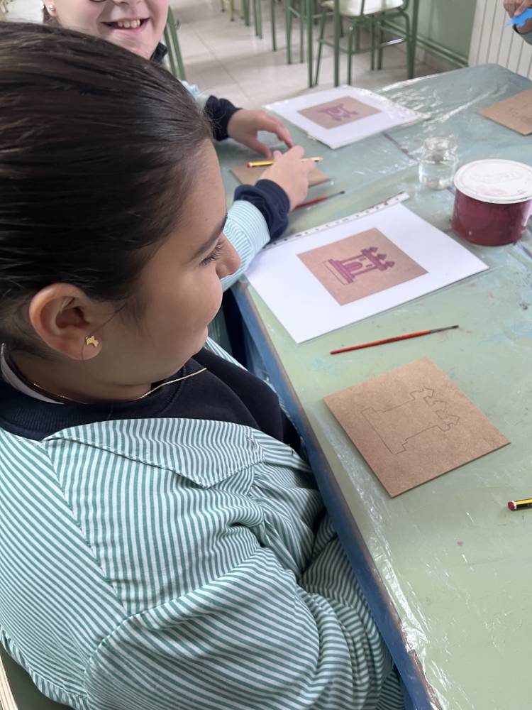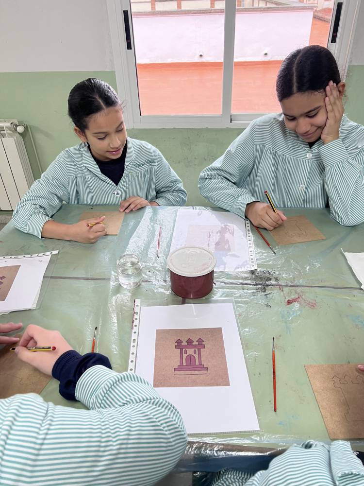 Las alumnas de 6.º de Primaria participaron en un taller del equipo Pequeños Arqueólogos sobre los castillos medievales. Con la colaboración de Rubén, miembro de este equipo, las alumnas conocieron qué es un castillo medieval, sus funciones, partes y estructura. En la parte práctica de la actividad cada una decoró su propia tabla mudéjar con el motivo de un castillo, uno de los motivos más característicos de la pintura mudéjar sobre tabla. Fue una actividad completísima.