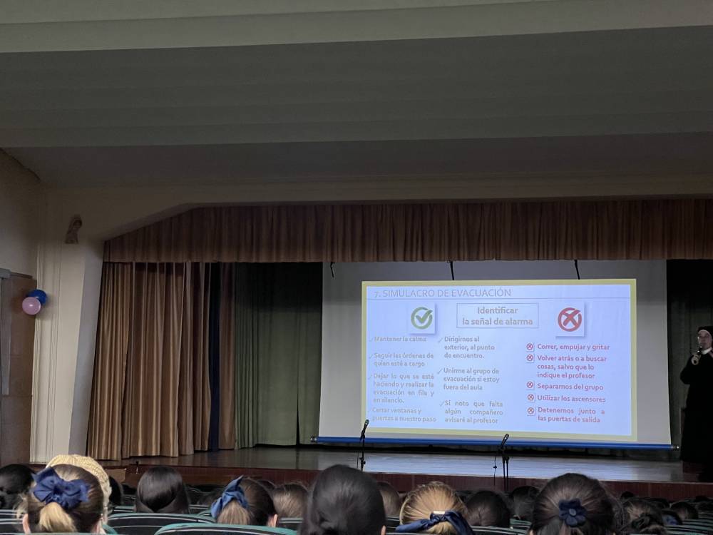 Dentro del curso del Plan de Formación ante Emergencias de Protección Civil, las alumnas de todos los niveles han tenido su primera sesión de formación. Ha consistido en conocer las emergencias más comunes y recordar los puntos esenciales para hacer una correcta evacuación del centro. Más adelante, se completará el curso con otras sesiones formativas.
